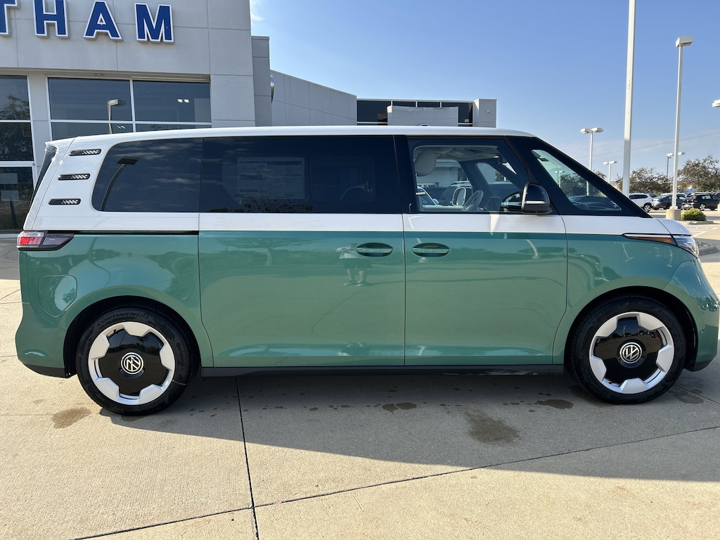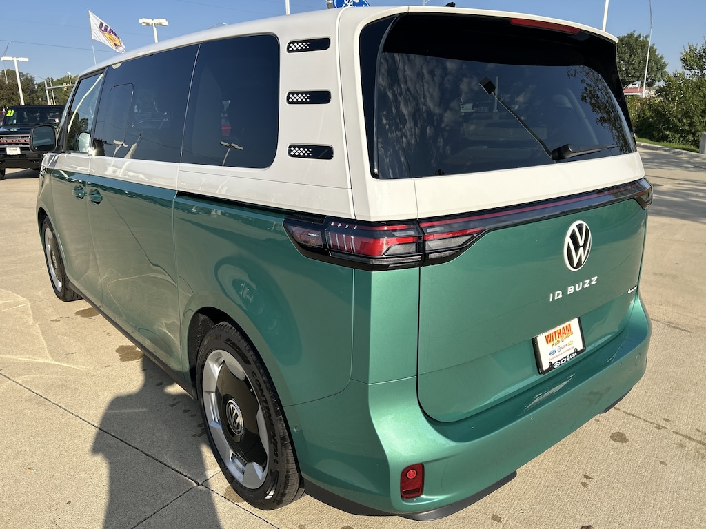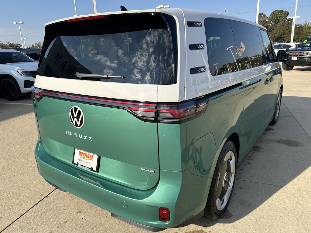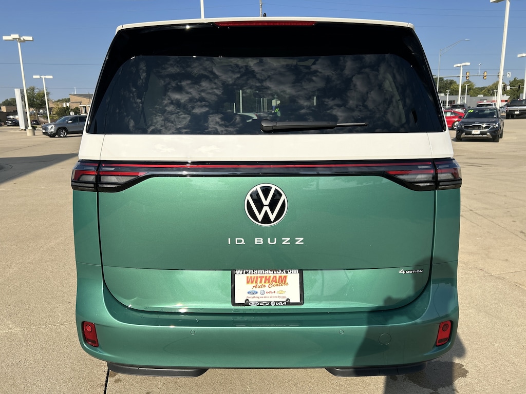This Volkswagen ID. Buzz delivers a Electric engine powering this Automatic transmission. Wireless Phone Connectivity, Window Grid And Roof Mount Diversity Antenna, Wheels: 20" Two-Tone Disc Alloy.